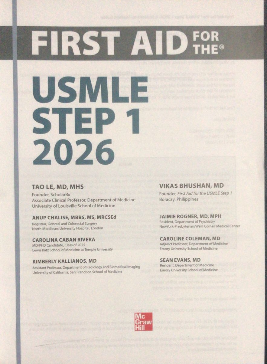 • First aid for the USMLE Step 1 is International Edition 2026, A student to student guide.